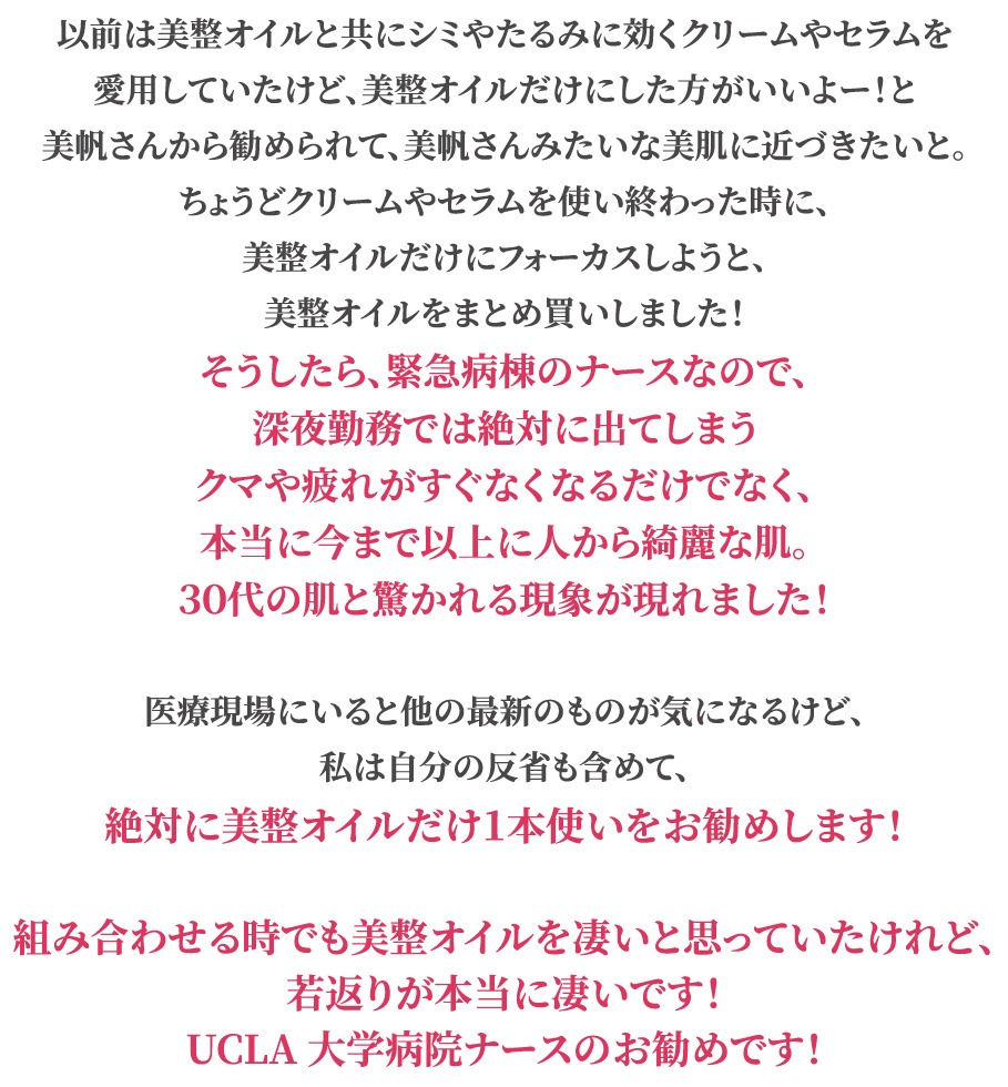 成分:オーガニック特殊製法マカデミアナッツオイル/オーガニックオメガ3-6-7&9(植物由来)/オーガニックローズオットー/オーガニックビタミンE(植物由来)/ オーガニックイタリアイトスギ葉油/オーガニックパチュリ油/オーガニックシトロネラ油/オーガニックバクホウシアシトリオドラ葉油 / 24K純金
