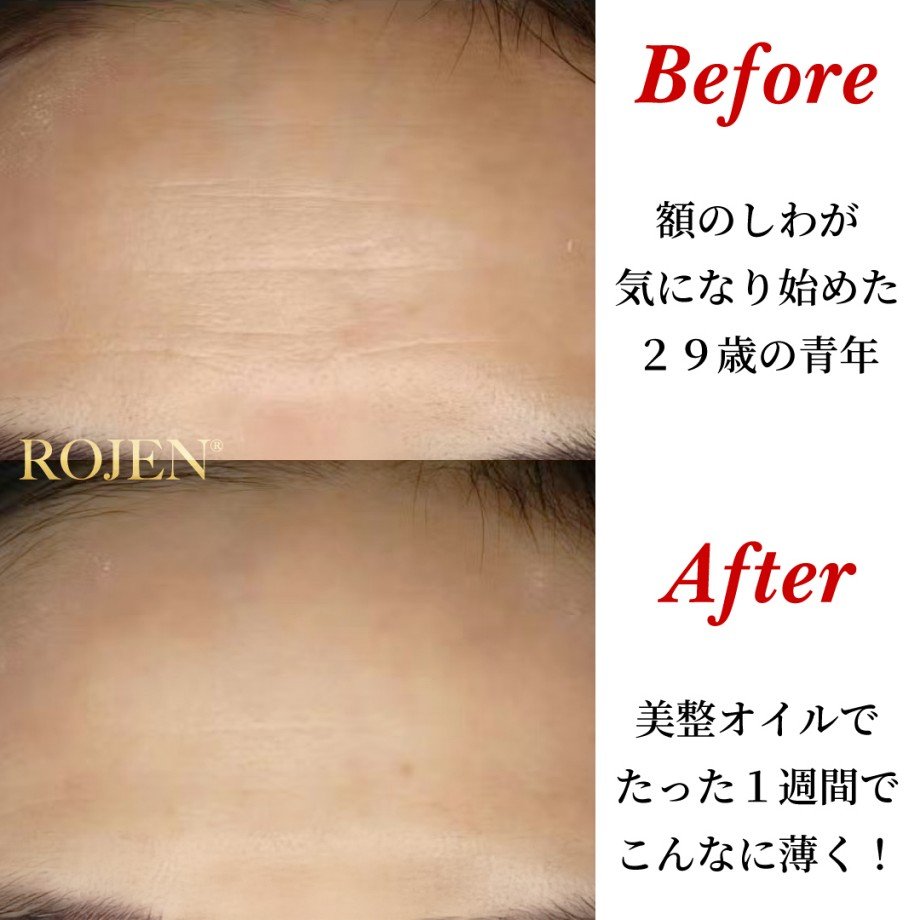 こちらは29歳青年の 驚きのビフォアフター! 朝の洗顔後と入浴、 夜寝る前に 美整オイルを使ったら、 たった1週間で 額のシワが こんなに目立たなく‼️