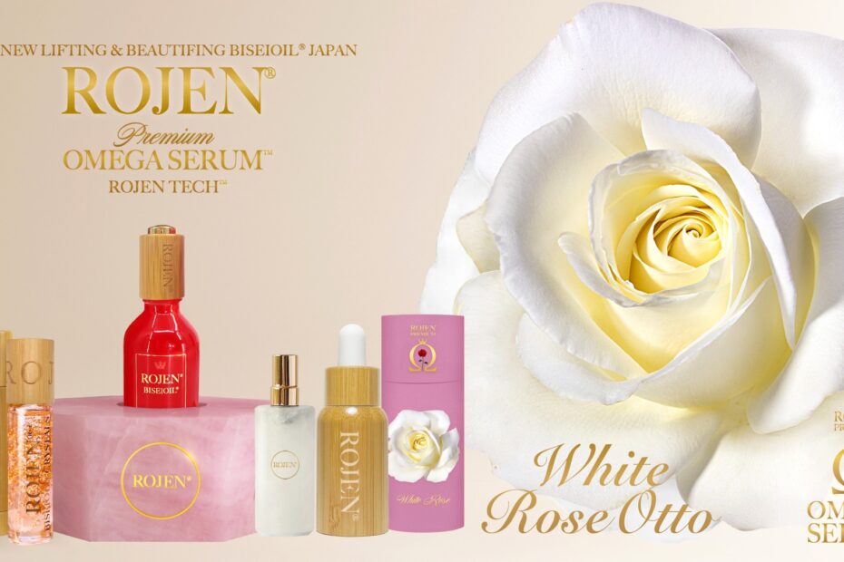 メラニン生成を抑えるパワーを凝縮した最高品質のアルバローズ60本から生まれるたった1滴の持つ高濃度の栄養素:ROJEN®ホワイトローズシリーズ