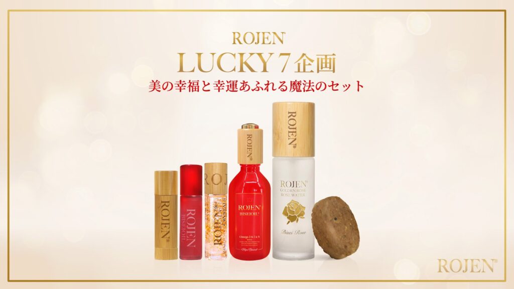 美整オイルをお友達に勧めることが多い美整オイルエンジェルたちの美女平和応援企画! 大人気😍ROJEN LUCKY7企画に「GOLDEN ROSE ローズウォーター」がお得に購入できる夢のセットが誕生しました🎉